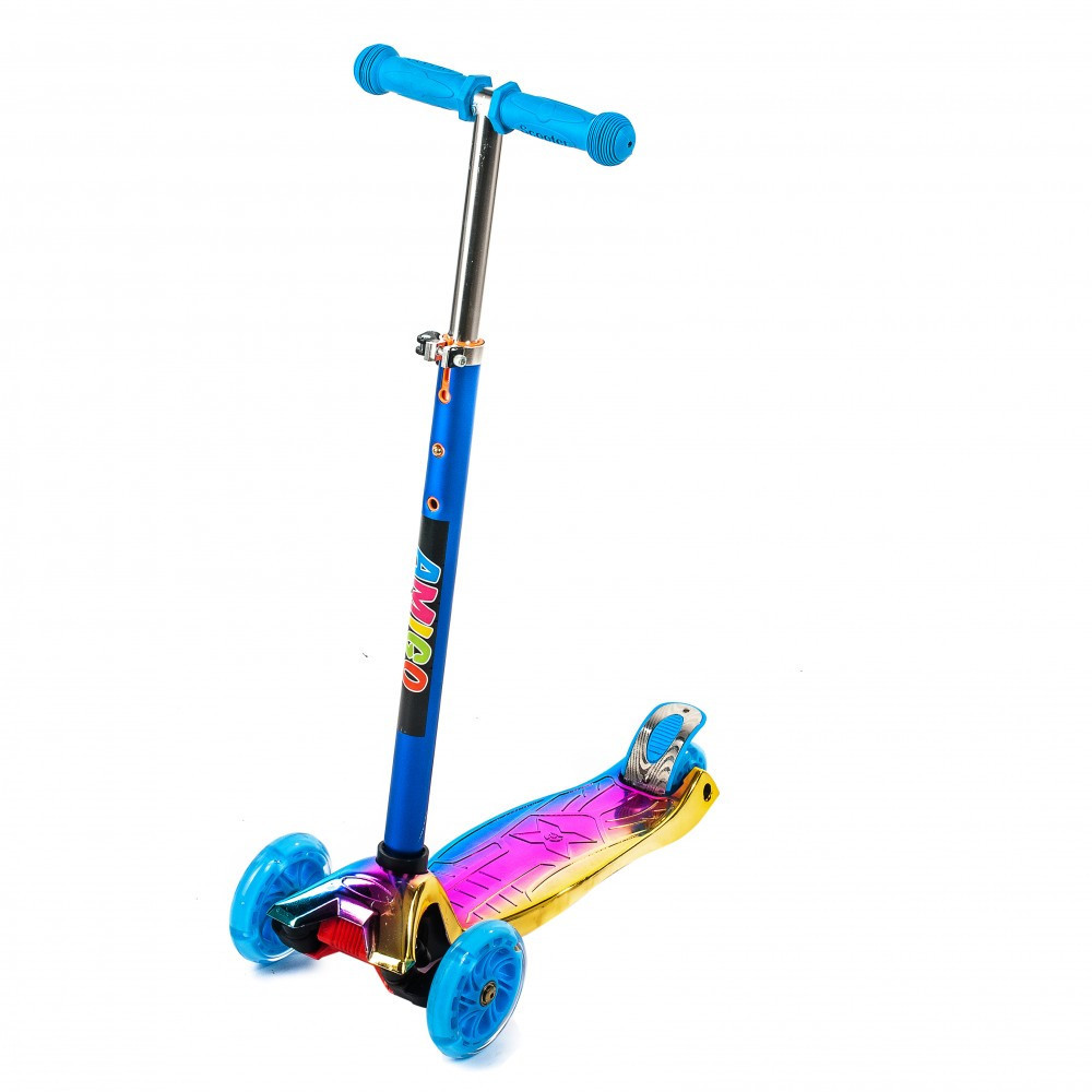колеса: поліуретанові, передні 125 мм, заднє 80 мм, світяться під час руху