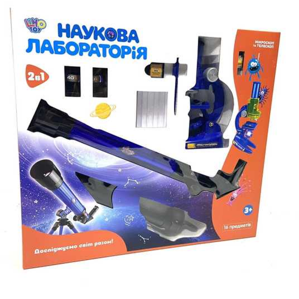 Ігровий набір 2 в 1 мікроскоп із телескопом SK 0014 — чудовий вибір для допитливих дітей, які мріють досліджувати світ навколо себе. Компактний та зручний у використанні, він дозволяє розглядати як найдрібніші об'єкти під мікроскопом, так і далекі небесні тіла через телескоп.