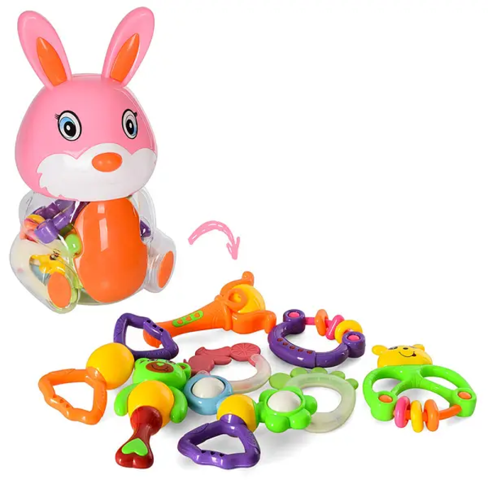 Набір брязкальця Кролик A888-110 – це відмінний вибір для малюків. У комплект входить 8 яскравих брязкальців, виконаних із міцного та безпечного пластику. Іграшки мають різні форми та кольори, що сприяє розвитку моторики, слуху та зорового сприйняття дитини. Легкі та зручні у використанні, вони ідеально підходять для перших ігор малюка.