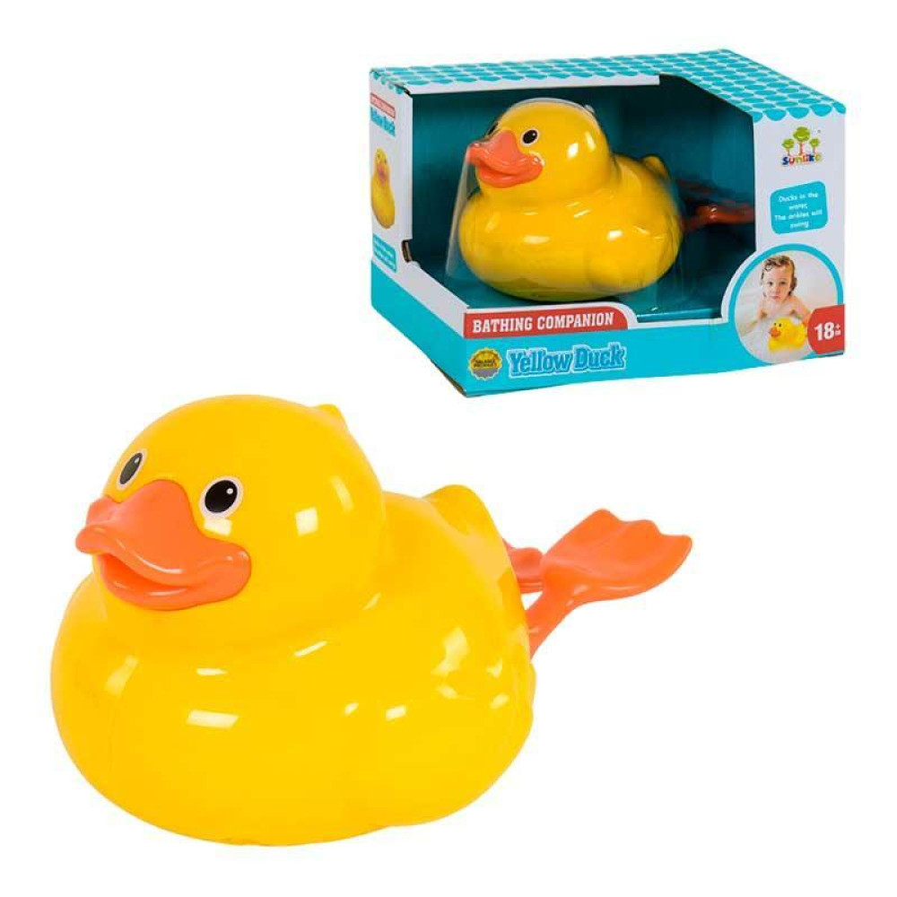 Ця яскрава качечка виготовлена з безпечного пластику та призначена для дітей віком від 18 місяців. Вона активується при зануренні у воду та імітує плавання, перебираючи лапками. Іграшка працює від двох батарейок типу AA (не входять у комплект).