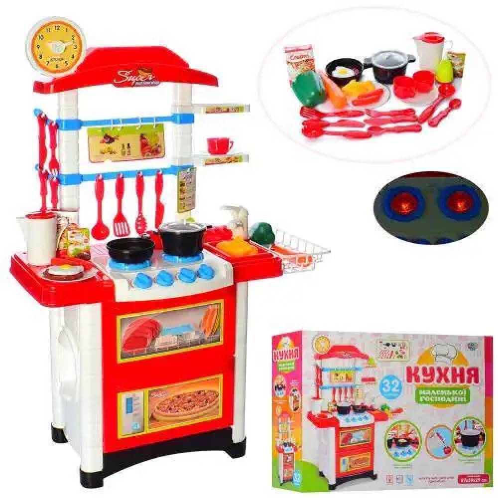 Дитяча кухня 889-3 — інтерактивний ігровий набір для дітей, який дозволяє імітувати процес приготування їжі. Мініатюрна плита оснащена світловими та звуковими ефектами, що робить гру реалістичною та цікавою. Набір включає посуд, каструлі, сковорідки, прилади та інші аксесуари, завдяки чому дитина може грати в кулінарні ігри та розвивати уяву.