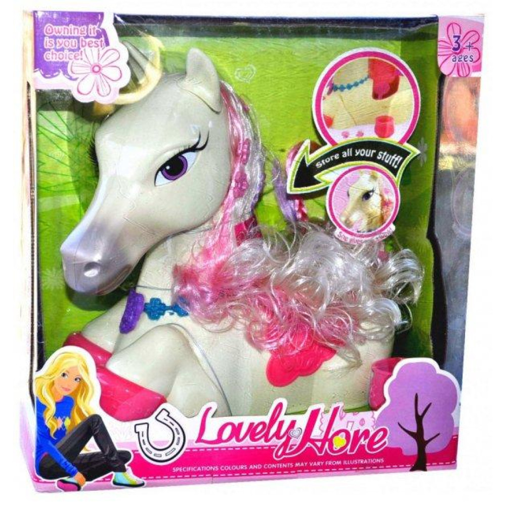 Ігровий набір Lovely Lore «Кінь-манекен» — яскравий та оригінальний подарунок для дівчаток, які люблять поні та створення зачісок. Кінь має довгу красиву гриву, яку можна розчісувати та прикрашати. Особливістю набору є те, що фігурка коня виконує функцію скриньки для зберігання аксесуарів.