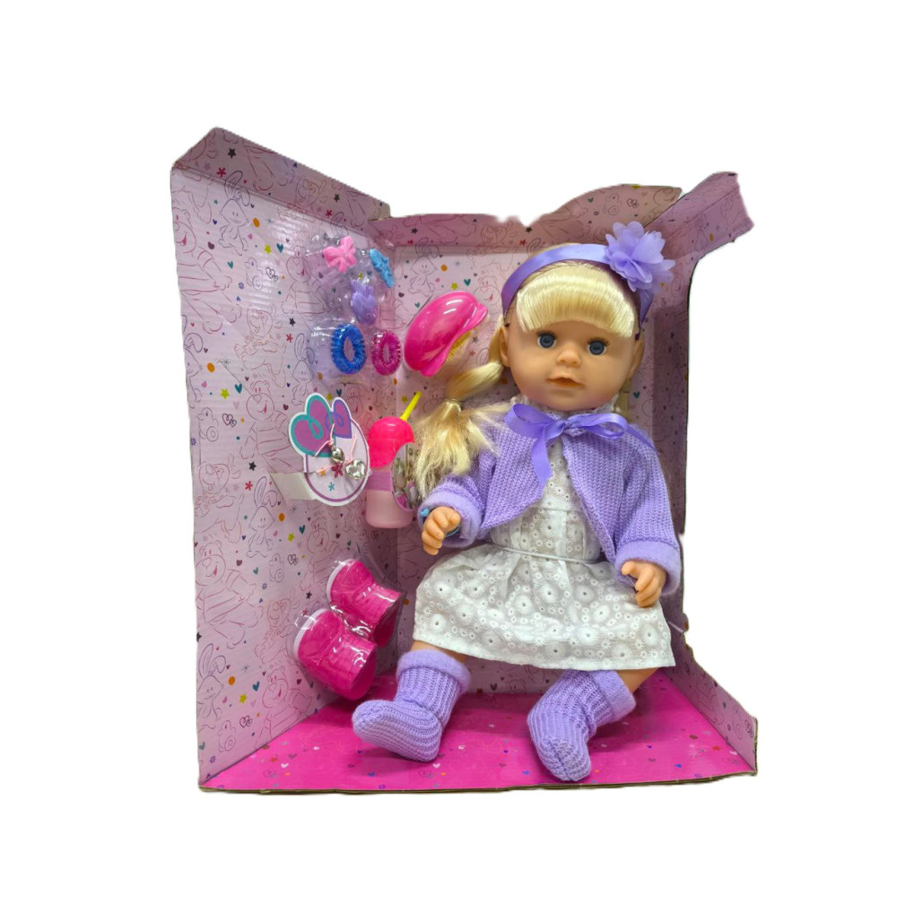 - Комплектація: пупс, пляшечка, щітка для волосся, заколки, прикраси, взуття