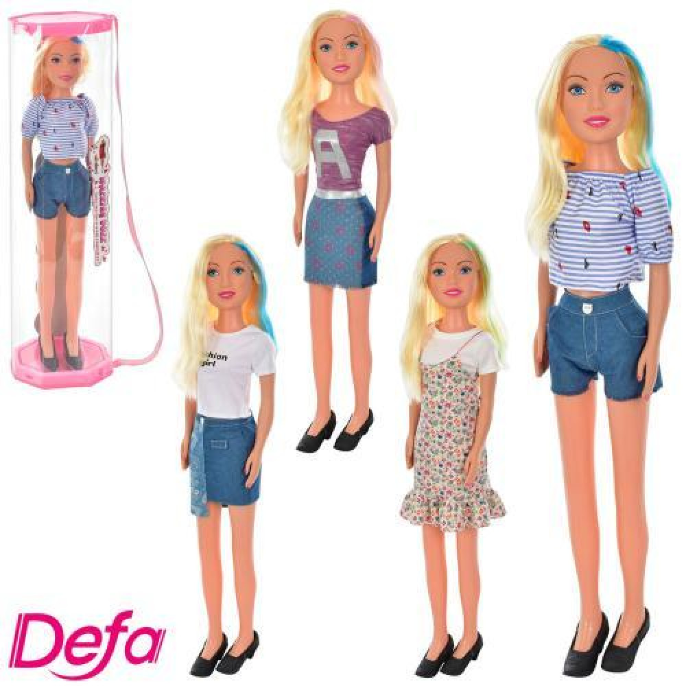 Ростова лялька Defa висотою 80 см — якісний аналог ляльки Барбі у стильному образі серії «Street Casual». Лялька має шарнірну конструкцію: рухливі голова, руки та ноги, що дозволяє змінювати пози. Довге світле волосся підходить для розчісування, створення зачісок та укладок. Великий розмір робить гру більш реалістичною та захопливою для дитини.