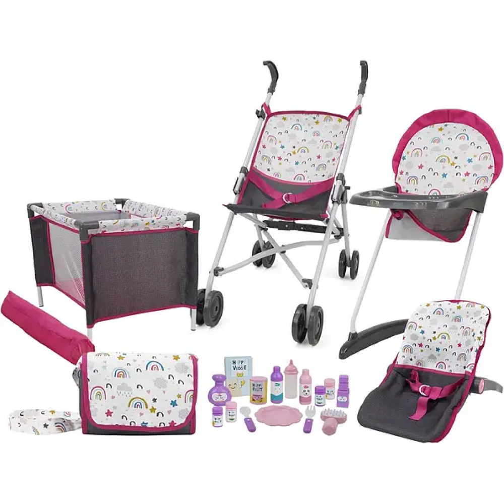 Ігровий набір «Догляд за пупсом» T818021 – це повний комплект для захоплюючих ігор у «дочки-матері». У набір входять прогулянкова коляска, стільчик для годування, манеж, люлька-перенесення, сумка та аксесуари. Такий набір дозволить дитині піклуватися про ляльку, як справжнього малюка, розвиваючи уяву та навички турботи.