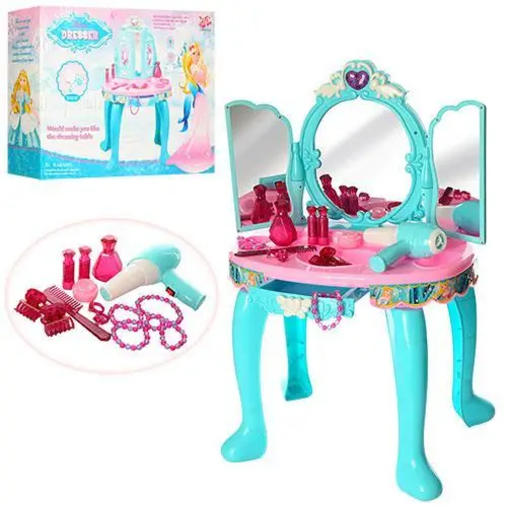Трюмо 90009 — чарівне місце для ігор та догляду за собою для маленьких принцес. З яскравими дзеркалами та милими скриньками для косметики та аксесуарів, діти можуть приміряти різні ролі, створювати зачіски та макіяж. Компактний та легкий — ідеально підходить для домашніх ігор та дитячих вечірок.