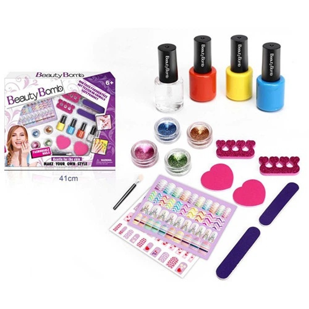 Дитячий набір для зачіски та манікюру 667-1 — стильний і яскравий набір для маленьких модниць. Лаки, блискітки та наклейки дозволяють створювати власні дизайни нігтів, розвивають фантазію, увагу та дрібну моторику. Ідеально підходить для веселого проведення часу з друзями.