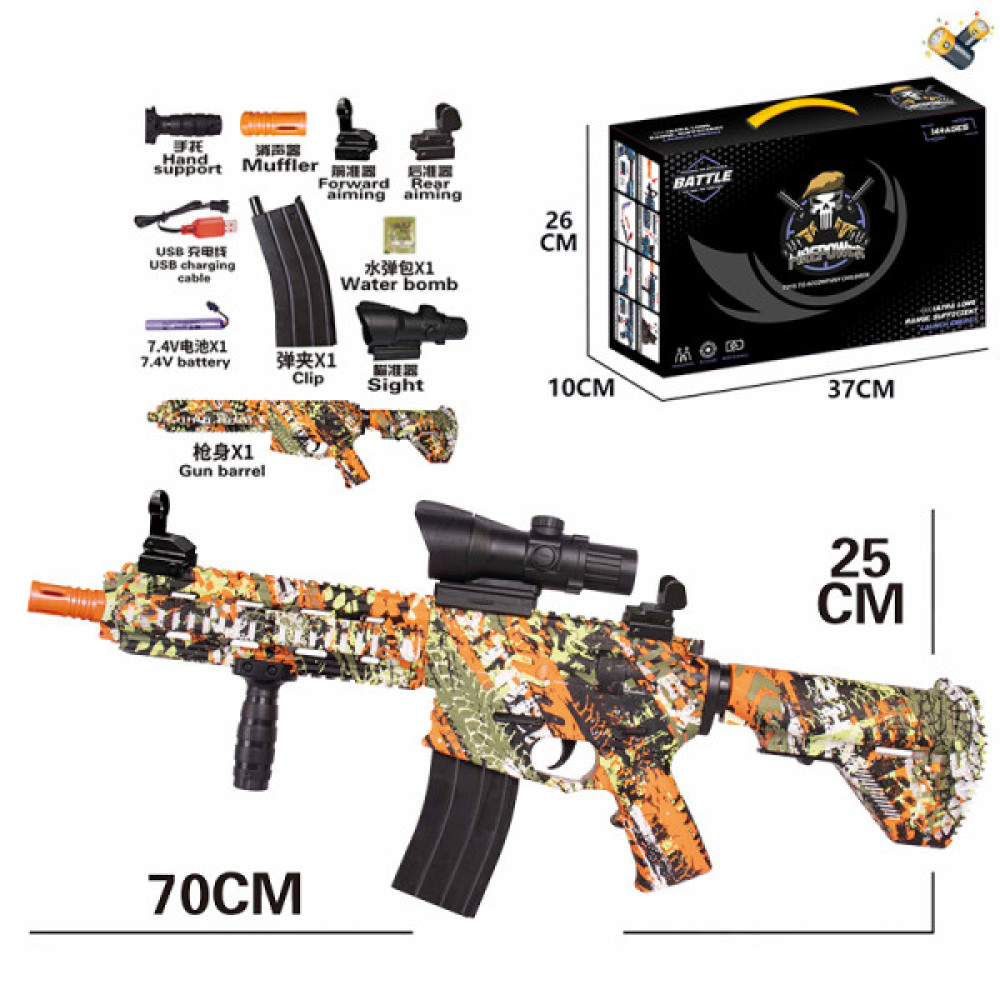 Автомат іграшковий із орбізами на акумуляторі 003 — це яскрава та динамічна розвага для активних ігор на вулиці або вдома. Стріляє м’якими гідрогелевими кулями (орбізами), які безпечні для дітей та легко розчиняються у воді.