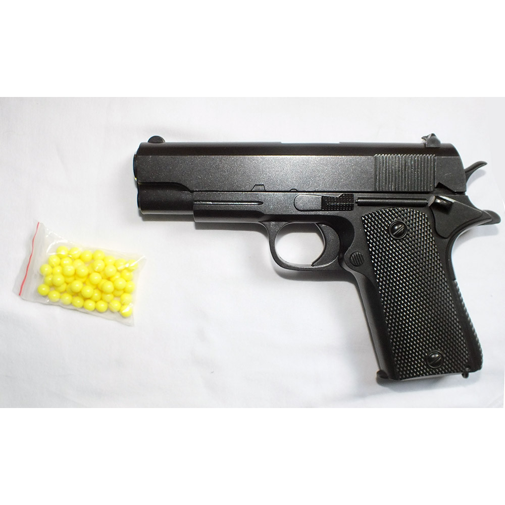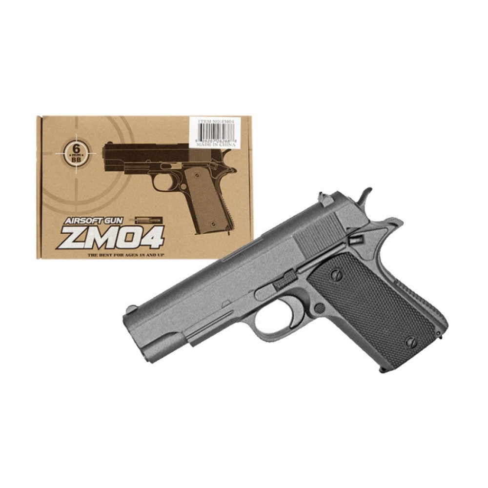 грашковий дитячий пістолет на пульках ZM04 — це реалістична модель, що імітує Colt 1911. Виготовлений з металопластику, він має зручну ергономічну форму та механічний принцип дії, що забезпечує безпечну гру без використання батарейок.