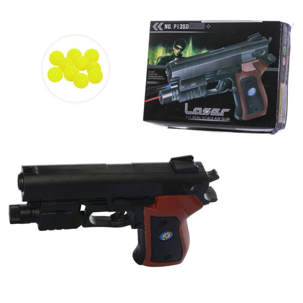 Іграшковий пістолет 135D — це компактна модель довжиною 16 см, що поєднує в собі світлові ефекти та лазерний приціл. Виготовлений із якісного пластику, він безпечний для дітей та зручний у використанні. Пістолет стріляє пластиковими кульками діаметром 6 мм, що додає реалістичності грі.