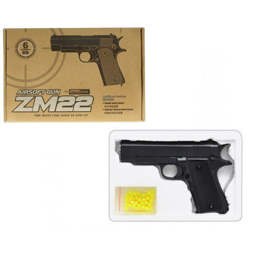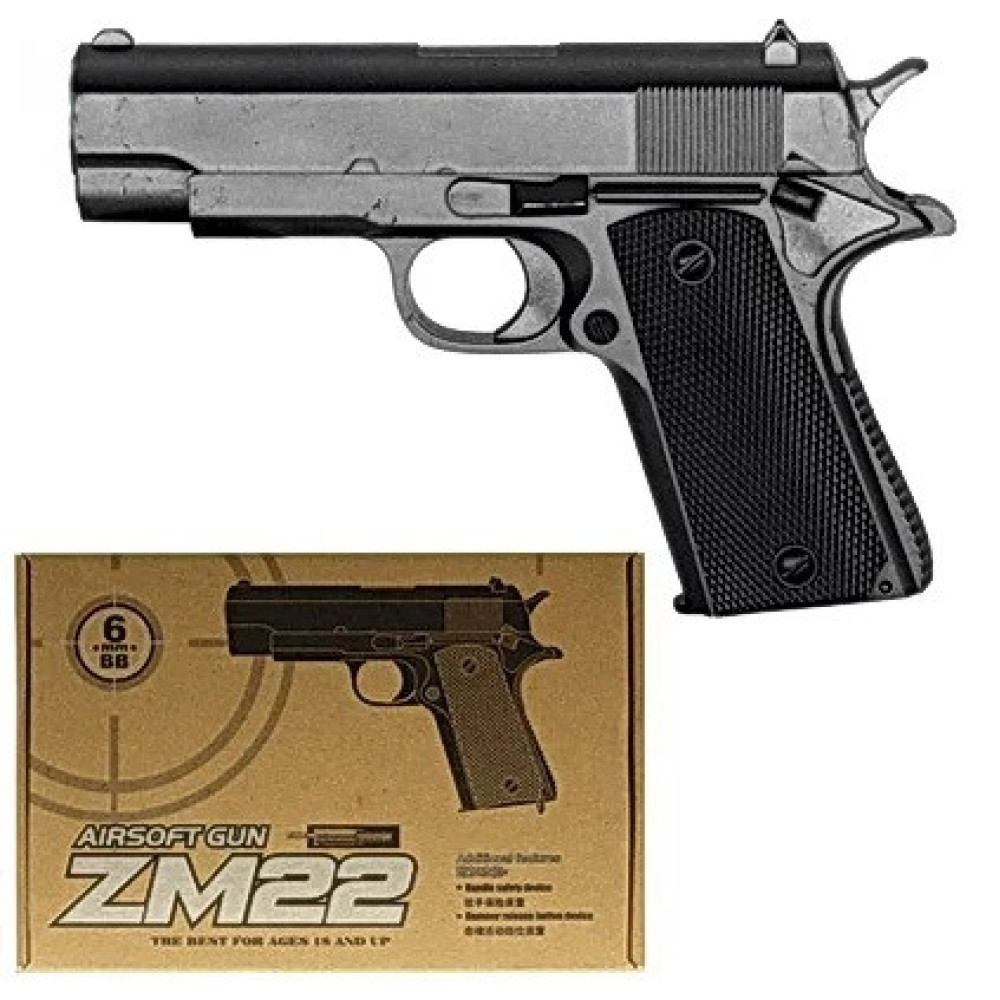 Пістолет ZM22 — дитяча іграшка, що імітує реальний пістолет, виготовлена з металу та пластику. Він стріляє пластиковими кульками діаметром 6 мм, які входять до комплекту.