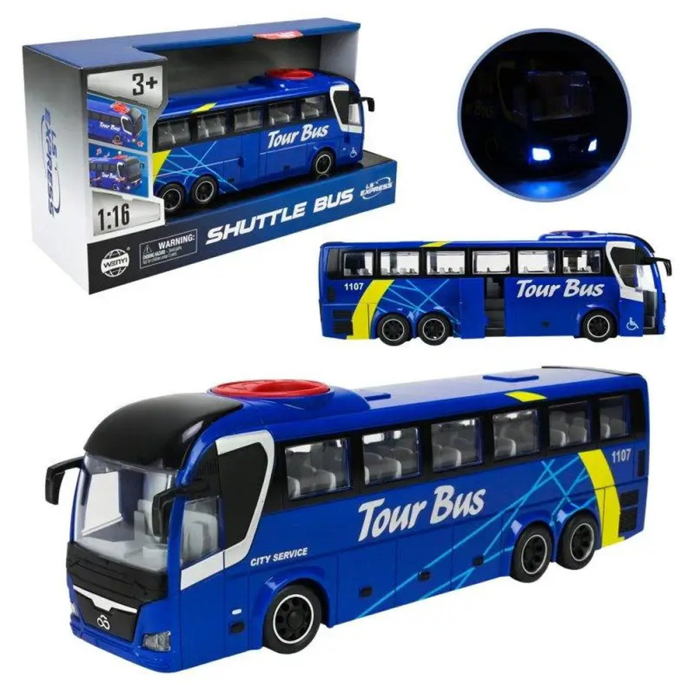 Туристичний іграшковий автобус інерційний зі світлом і звуком WY1107A — це реалістична модель міського транспорту для захопливих сюжетних ігор та уявних подорожей.