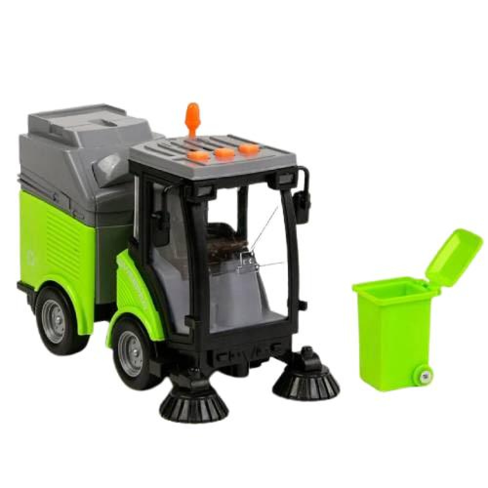 Машинка інерційна Сміттєвоз WY 680 A — реалістичний іграшковий сміттєвоз із інерційним механізмом, що рухається вперед після легкого поштовху. На даху розташовано три функціональні кнопки: звуки запалювання, гудок і сигнал заднього ходу, при активації яких проблискові маячки підсвічуються білим світлом. Дзеркала та прибиральні щітки виконані з м’якої гуми, а рухомий причіп з заднім навантаженням дозволяє дитині детально вивчати техніку.