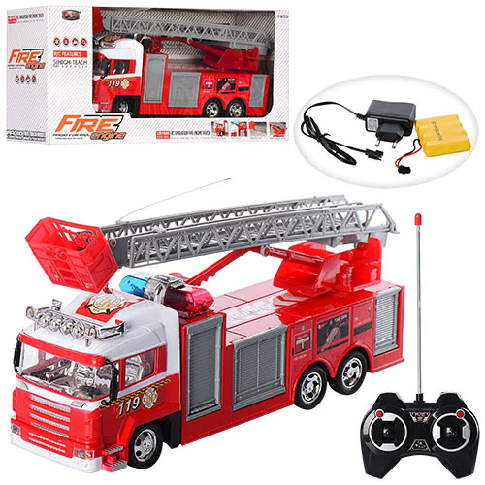 Дитяча пожежна машина на радіокеруванні 666-117А — іграшкова модель довжиною 33 см, виконана в червоно-білому кольорі з характерними елементами пожежної техніки. Має світлові та звукові ефекти, які додають реалістичності під час гри.