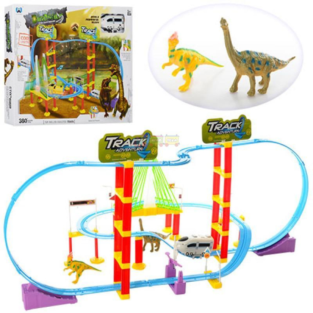 Трек-залізниця «Динозаври» (модель 8009) — це яскравий ігровий набір у доісторичному стилі. У комплект входить локомотив зі світловими та звуковими ефектами, фігурки динозаврів та елементи залізничної траси. Тематичне оформлення дозволяє дитині зануритися в атмосферу пригод з динозаврами.