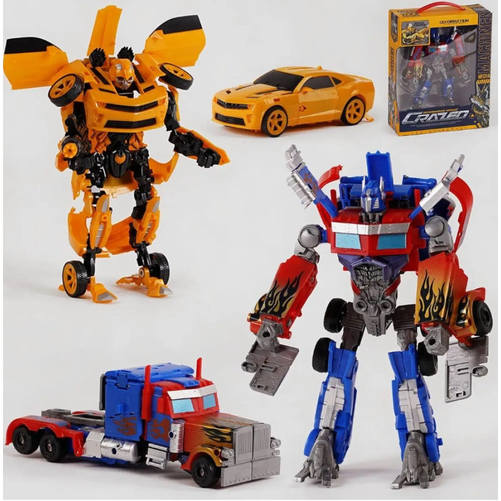 Іграшка, яка зображує одного з двох популярних персонажів з всесвіту трансформерів: Бамблбі або Оптімуса Прайма. Іграшка може трансформуватися з робота на автомобіль і навпаки, має яскравий дизайн та деталізовані елементи.
