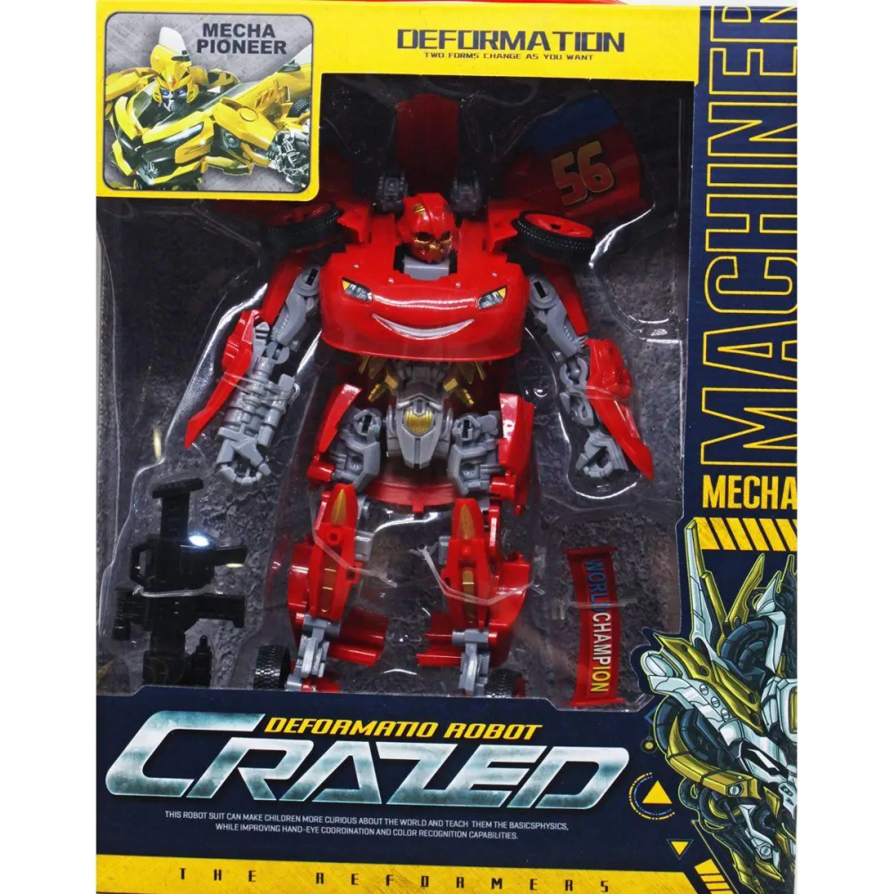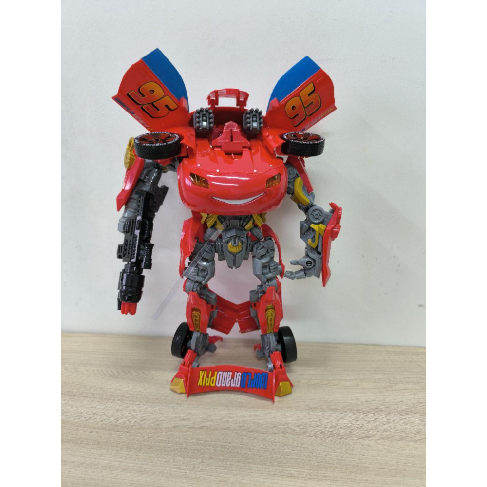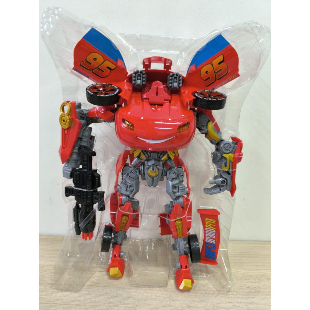 Іграшка, що поєднує образ популярного персонажа мультфільму «Тачки» з функціональністю трансформера. Вона легко перетворюється з машинки в робота і навпаки, оснащена світловими та звуковими ефектами, що додає реалістичності та захоплення під час гри.