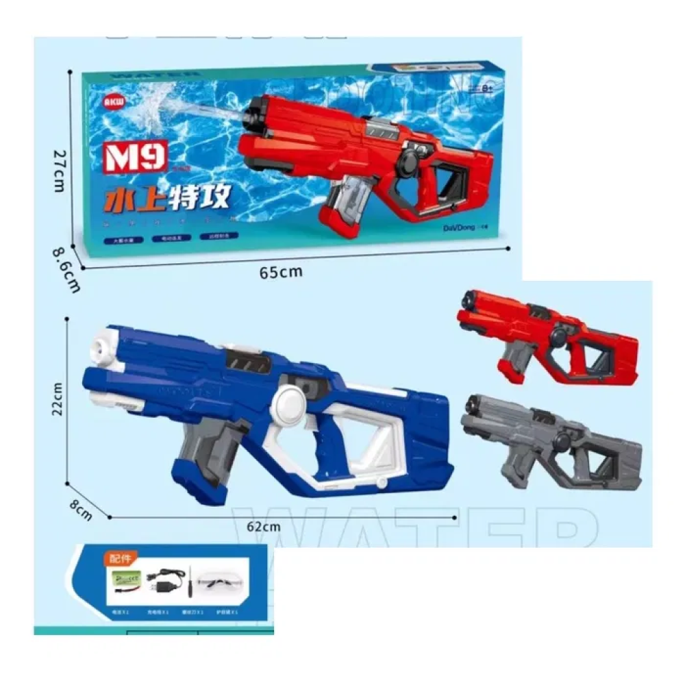 Дитячий водяний автомат M9 — це потужна іграшка для активних ігор на свіжому повітрі. Він працює від акумулятора, що дозволяє уникнути постійної заміни батарейок.