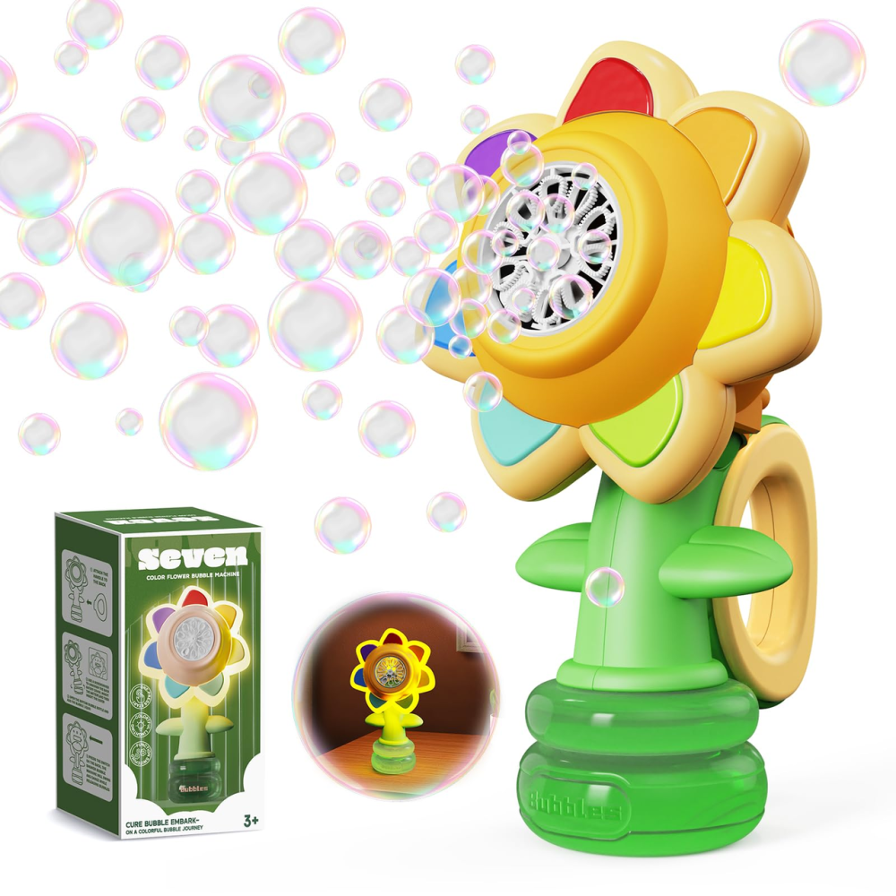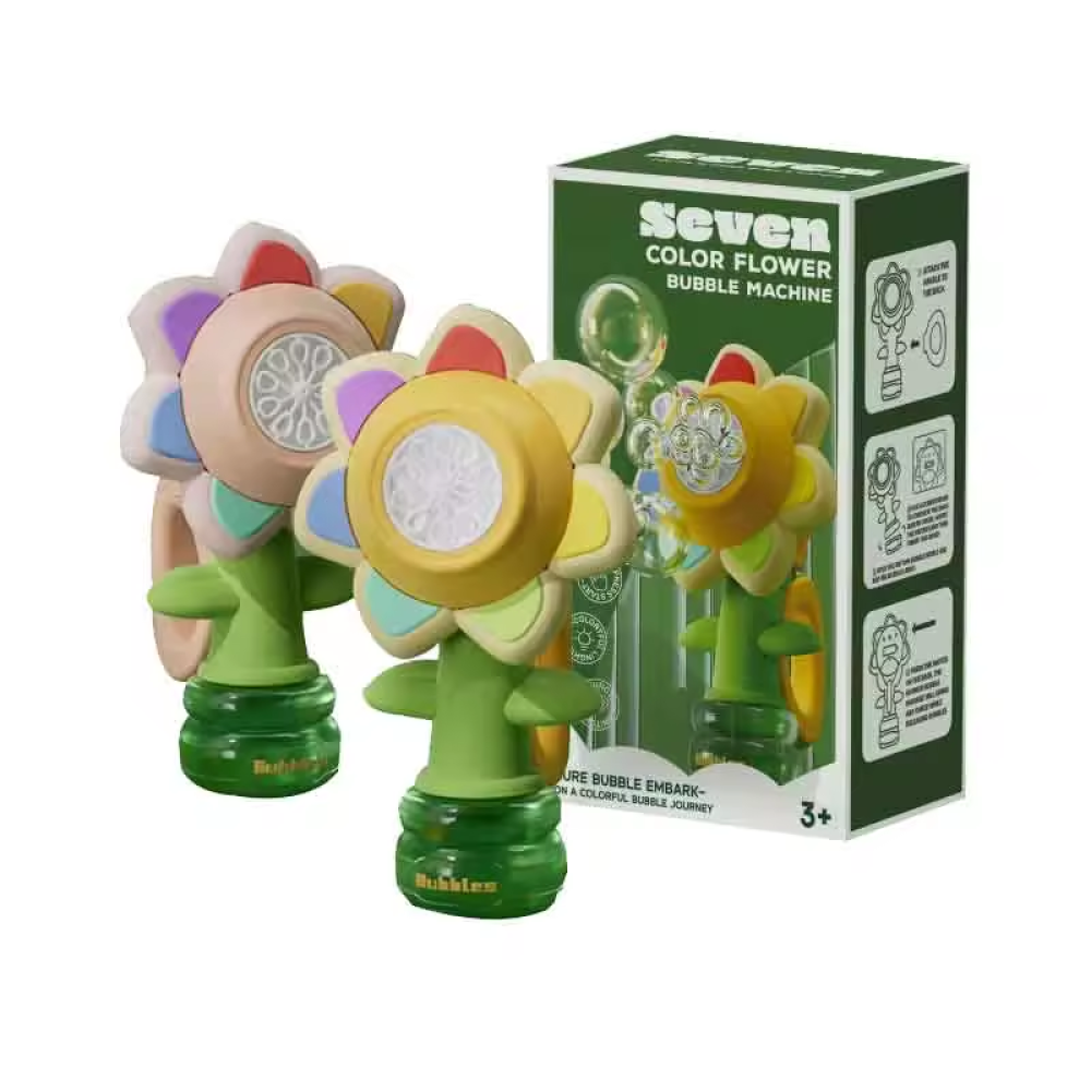 Генератор мильних бульбашок WX2405 — яскрава дитяча іграшка у формі квітки, яка автоматично видуває мильні бульбашки, має світлові ефекти та мелодії. Підходить для ігор вдома і на вулиці.