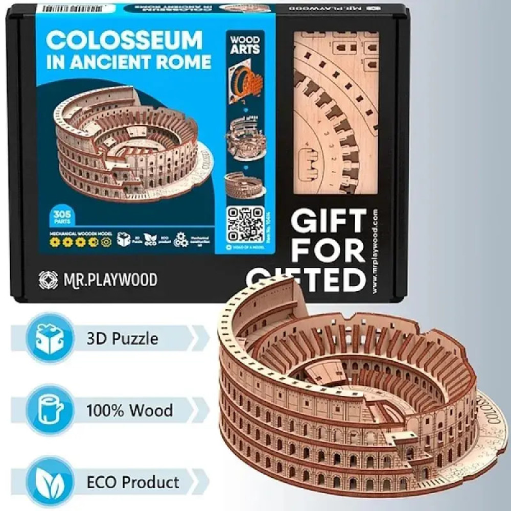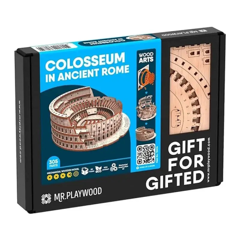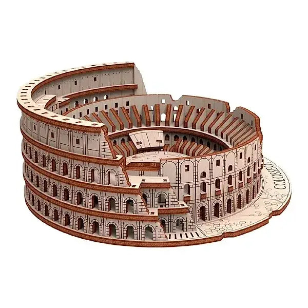 Дерев'яний 3D пазл Колізей 10414 складається з 305 деталей та дозволяє відтворити відому пам’ятку архітектури у мініатюрі. Елементи виготовлені з якісної фанери, з’єднуються без клею й інструментів. Під час складання розвивається увага, посидючість та просторове мислення.