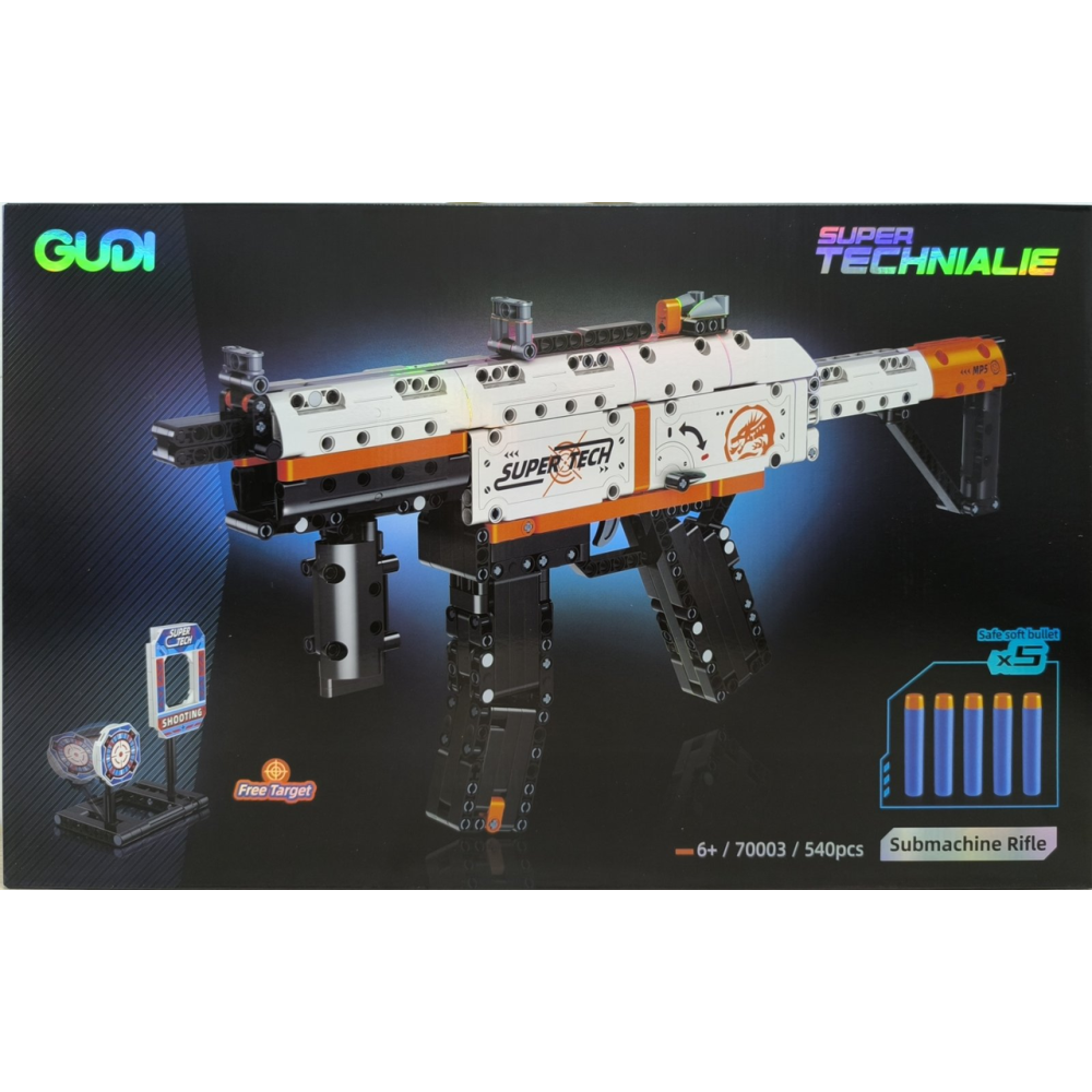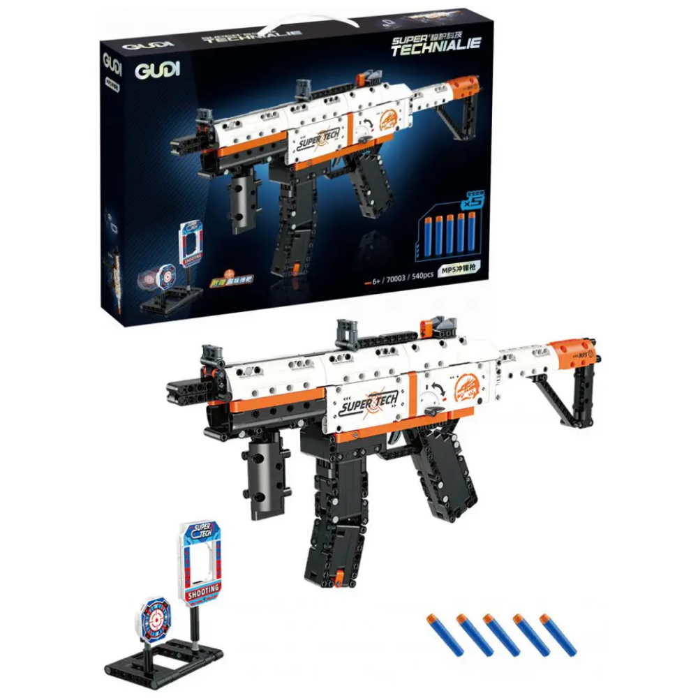 Дитячий конструктор Mould King 70003 дозволяє зібрати іграшковий автомат MP5 у масштабі 1:1 довжиною 48 см. Набір складається з 540 деталей і комплектується 5 м’якими кулями для безпечного використання. Конструктор сприяє розвитку дрібної моторики, логічного мислення та уяви, підходить для дітей і підлітків від 8 років.