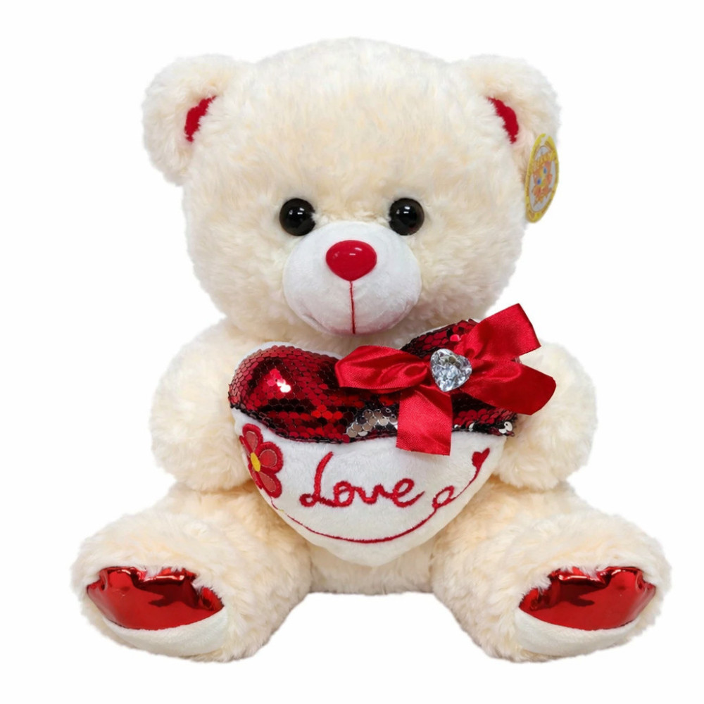М’який і приємний на дотик ведмедик із милим сердечком у руках — ідеальний подарунок для близьких і друзів. Висота іграшки — 30 см, виготовлена з безпечних гіпоалергенних матеріалів.