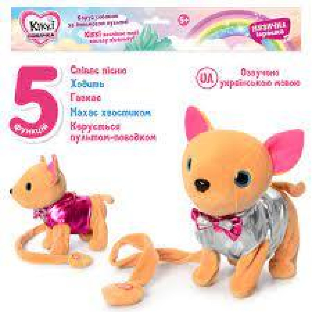 Кікі вміє ходити, співати пісеньки та виляти хвостиком. Яскравий дизайн і гарне вбрання роблять іграшку особливо привабливою для дітей та не залишають її без уваги.