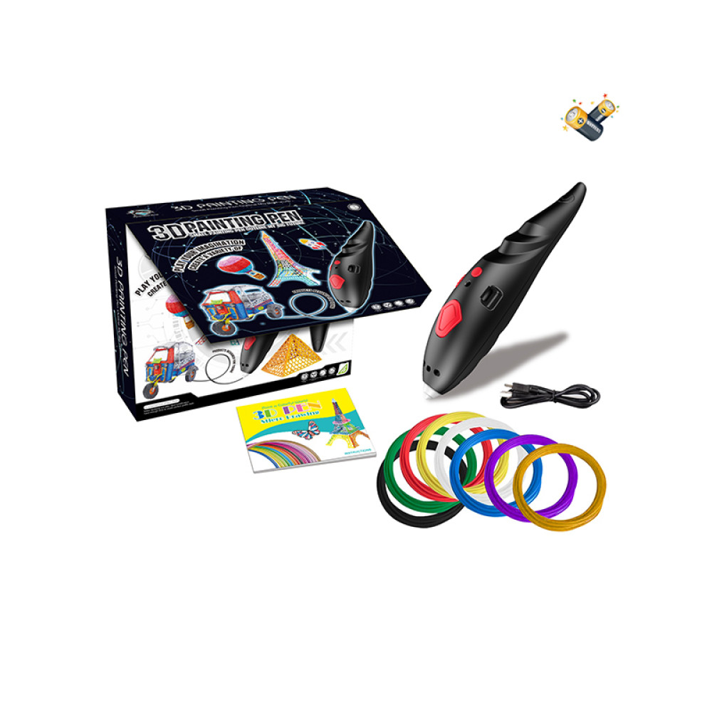 Комплектація: ручка, кабель для зарядки, 8 котушок пластика різних кольорів, трафарети та розмальовка