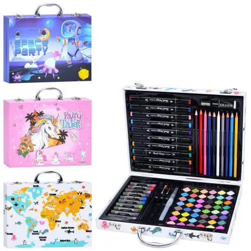 Набір MK 5386-2 – ідеальний подарунок для юного художника. Він включає все необхідне для малювання і творчості, зручно зберігається і легко переноситься завдяки валізі. Розвиває фантазію, моторику та смак до кольору. Підходить як самостійної творчості, так занять у навчальних закладах. Яскравий дизайн та різноманітність матеріалів роблять його улюбленим набором для багатьох дітей.