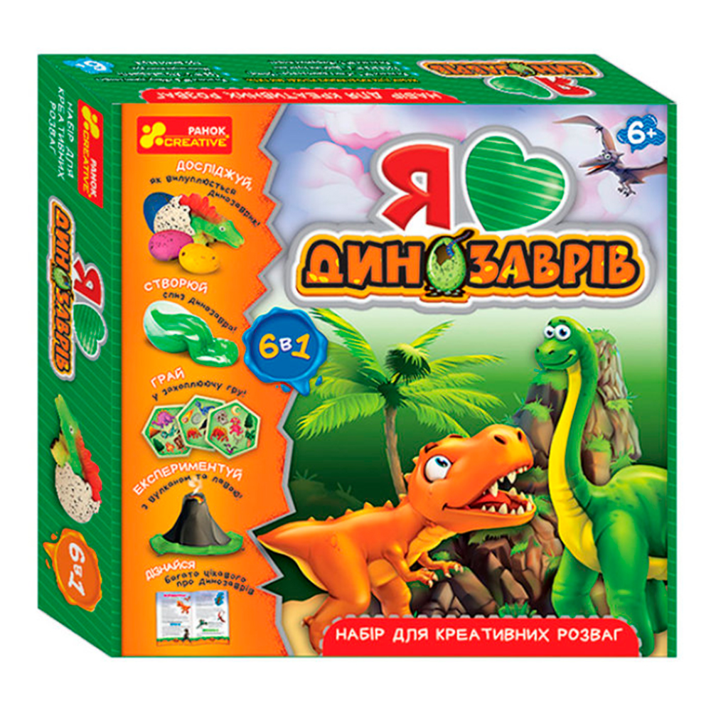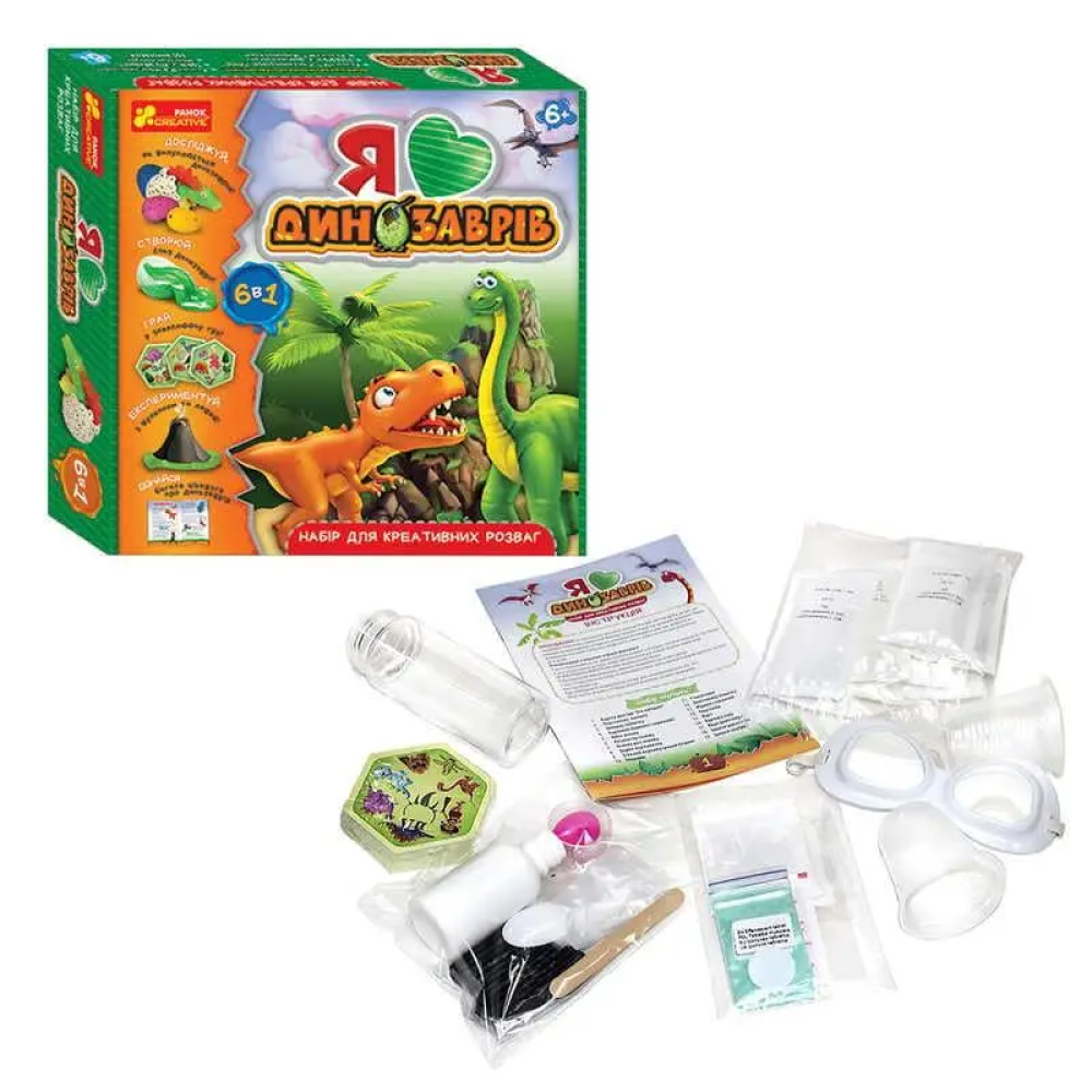 Набір експериментів Ranok «Я люблю динозаврів» (артикул 10155017У) — творчий комплект для дітей від 6 років, що дозволяє проводити наукові досліди та ігри на тему динозаврів.