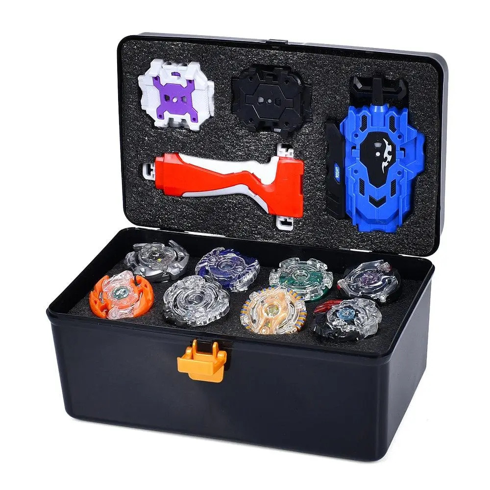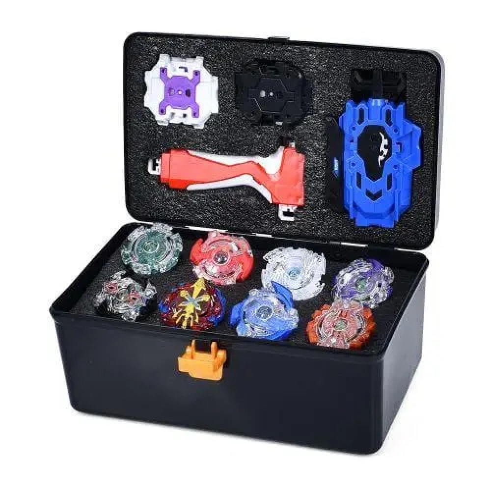Комплектація: 8 дзиг (матеріал: метал + пластик), пускові пристрої, кейс для зберігання