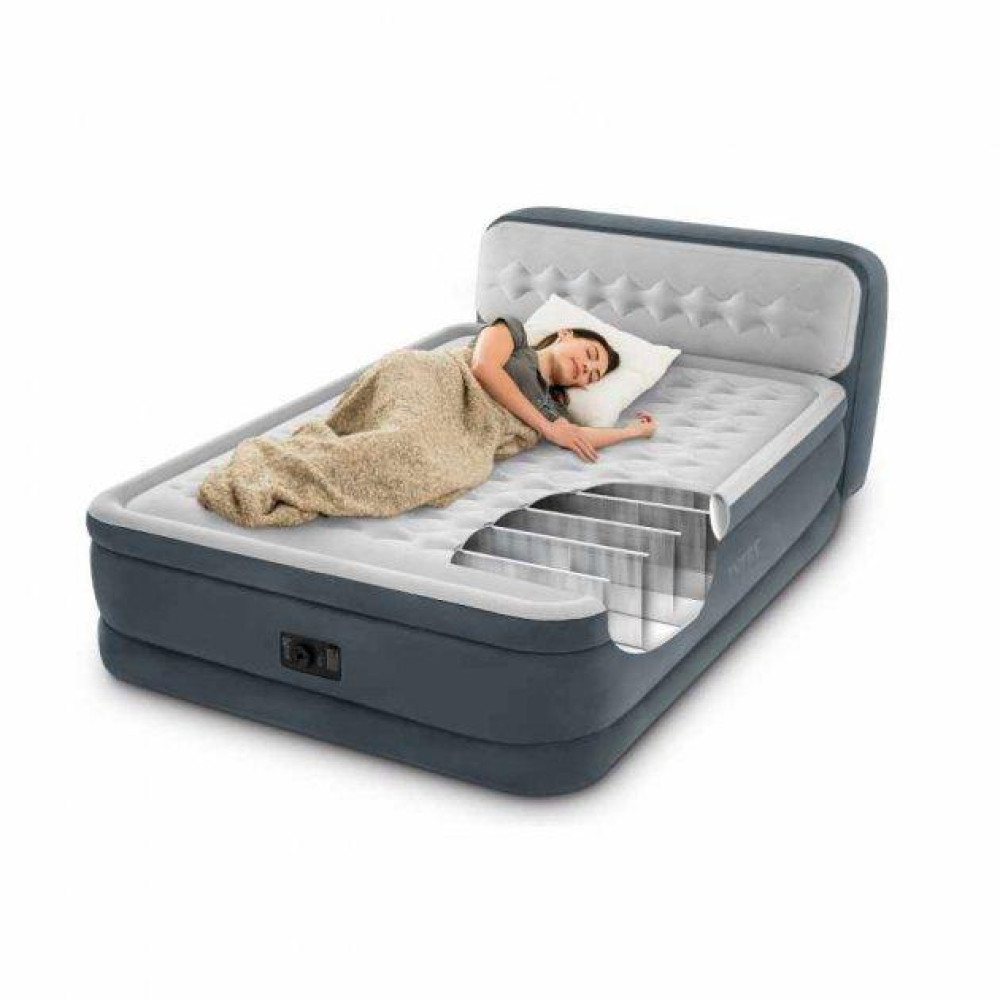 Надувне ліжко Intex 64448 — це двоспальний матрац з вбудованою спинкою, розмірами 152 × 203 × 86 см. Виготовлене з високоякісного ПВХ з флокованим покриттям, що забезпечує комфортний відпочинок. Вбудований електричний насос дозволяє швидко надути та здути ліжко, що зручно при транспортуванні та зберіганні.
