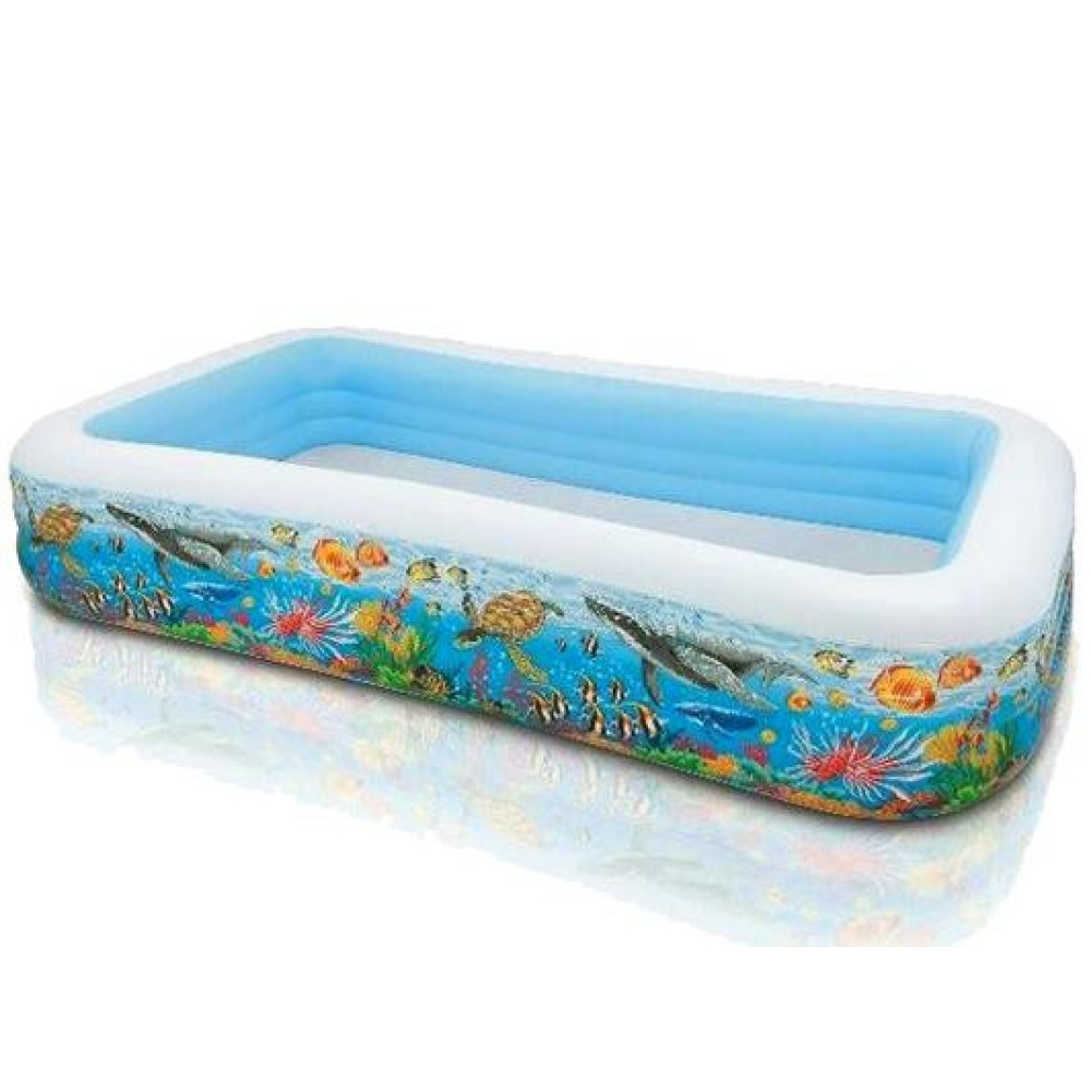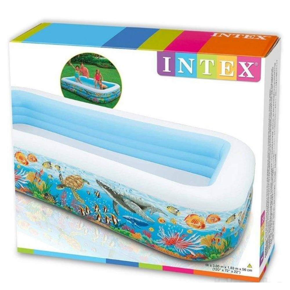 Басейн Intex 58485 — надувний прямокутний басейн розміром 305×183×56 см, призначений для сімейного відпочинку. Має морський дизайн з яскравими зображеннями рибок, що створює приємну атмосферу для водних ігор.