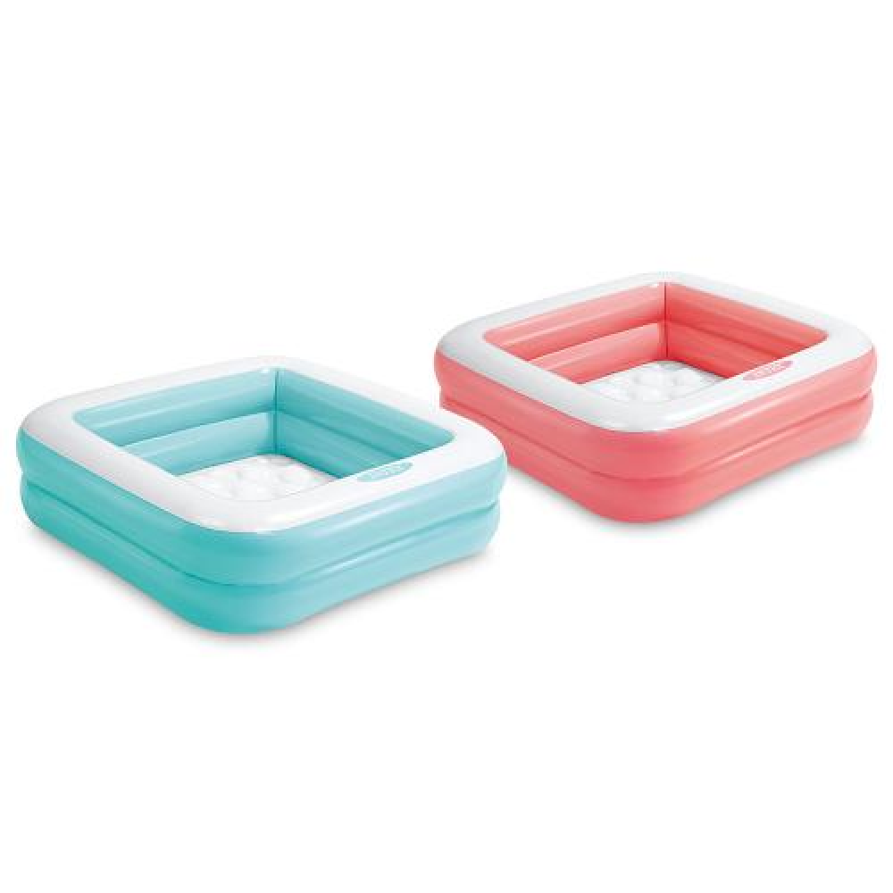 Дитячий надувний басейн Intex 57100 розміром 85×85×23 см підходить для малюків від 1 року. Виготовлений з якісного ПВХ, має м’яке надувне дно для комфортної гри. Доступний у двох кольорах — рожевому та зеленому.