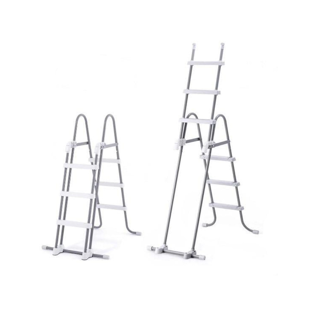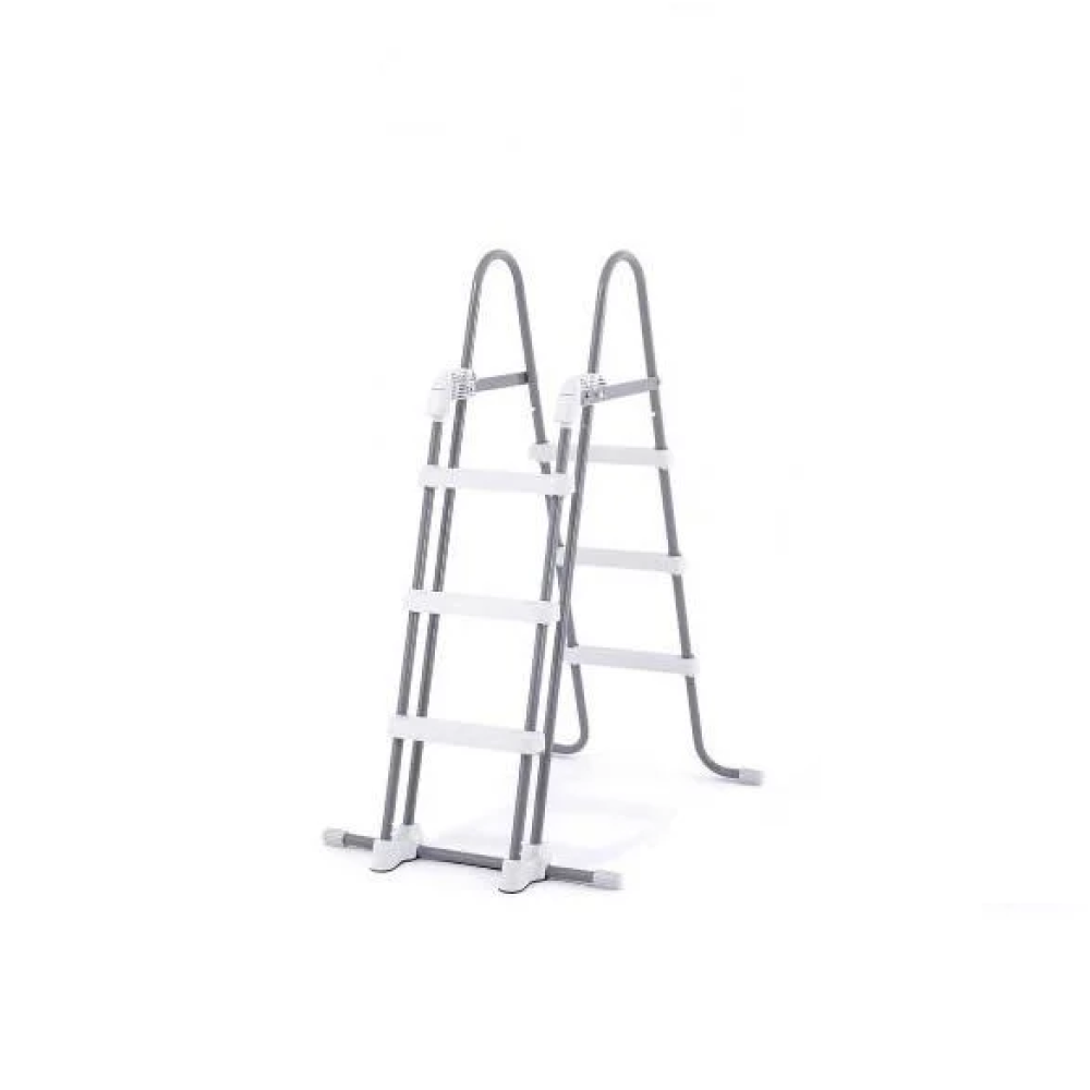 Сходинки виконані з міцного пластику з рельєфною поверхнею, що запобігає ковзанню під час підйому та спуску. На ніжках встановлені спеціальні захисні ковпачки, які захищають дно басейну від пошкоджень та забезпечують стійкість конструкції.