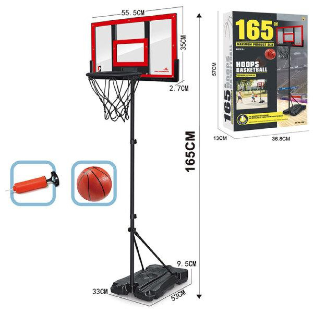 Дитячий баскетбольний набір A‑Toys 666-E8A включає щит із пластиковою основою, металеве кільце, м’яч та насос. Конструкція з посиленою металевою стійкою висотою 165см забезпечує стабільність під час гри. Розмір щита 56×35см. Поставляється в коробці 57×13×37см. Ідеальний для активних ігор вдома чи на подвір’ї.